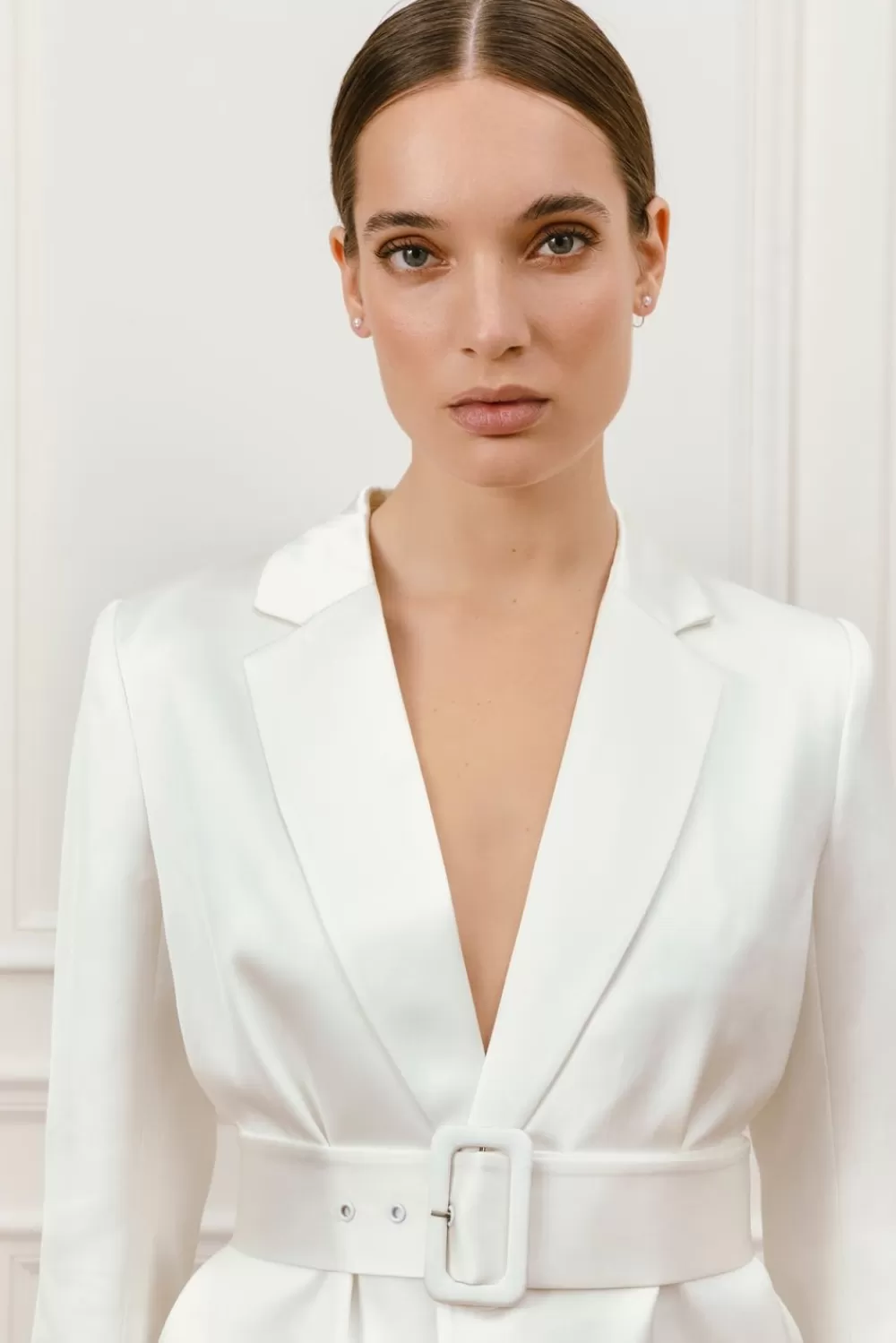 Kavaj med justerbart midjeband. Passar perfekt till våra kostymbyxor Mika. DETALJER Justerbart bälte Skal: 100% Viskos Foder: 53% Viskos 47% Rayon Endast kemtvätt Tillverkad i Guandong provinsen, Kina Normal i storleken. Modellen bär storlek S och är 178 cm lång.
