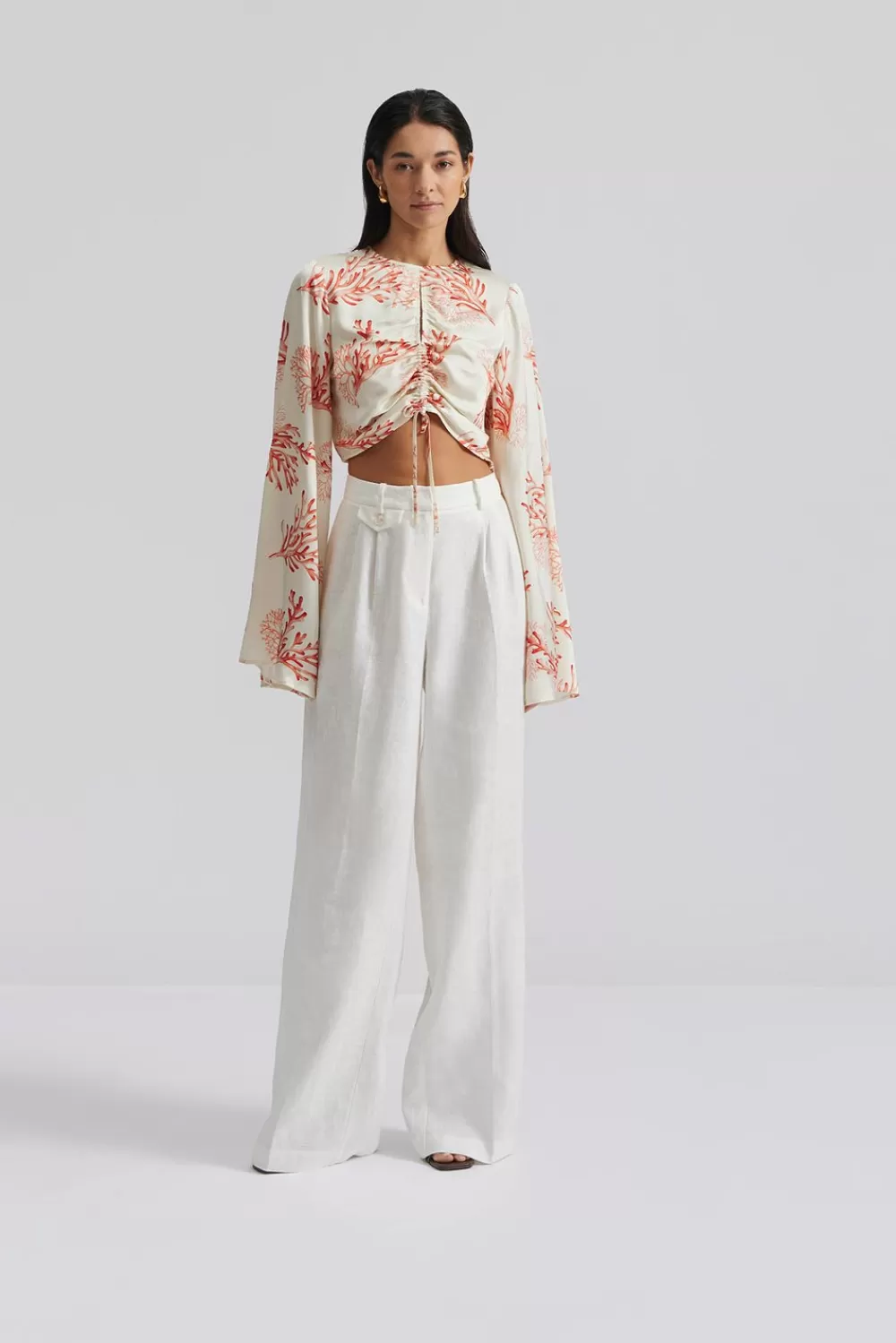 Kostymbyxor i vid design med hög midja och dubbla pressveck. DETALJER Kostymbyxor med hög midja Bred passform Hakstängning och dragkedja framtill Sidofickor Påsydda bakfickor Ytterfoder: 100% Linne Innerfoder: 97% Polyester 3% Spandex Tillverkad i Guangdong Province, Kina Normal storlek. Modellen bär storlek S och är 178 cm lång